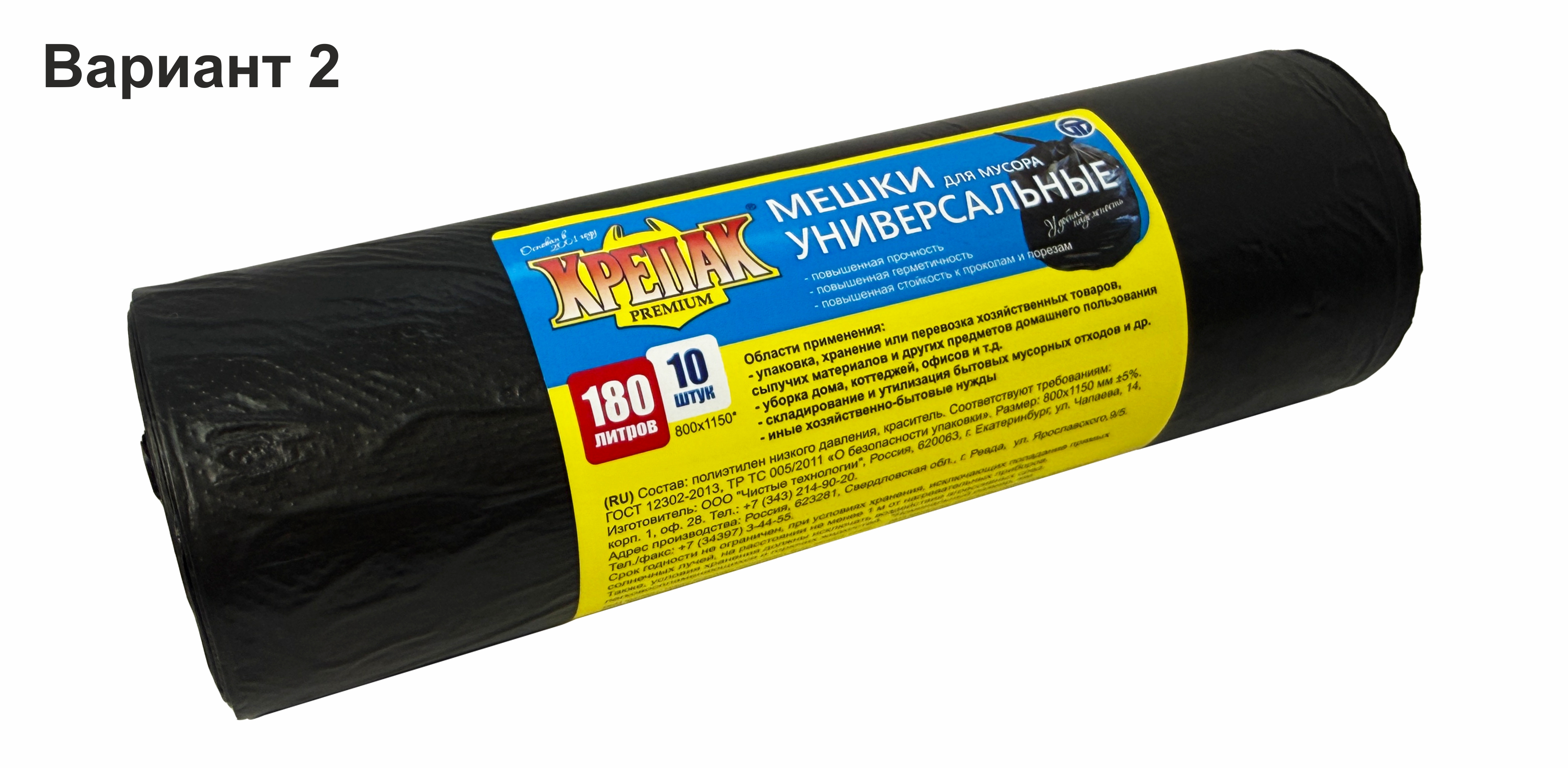 Мешки для мусора универсальные в рулоне Крепак 180 литров - 10 штук
